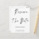 Estas personalizadas modernas e simples Alterações nas Cartões de Data são uma forma elegante de notificar os seus convidados da sua mudança de data. Os design modernos apresentam Reservar a Data, suas palavras, nomes e data especial em script e tipografia ousada. As costas têm um bilhete para a sua família e amigos. Clique em "personalizar este modelo" para mudar todo o texto para o seu. Por favor, veja nossos outros designs correspondentes na nossa loja. Se precisar de ajuda com a personalização ou solicitações especiais, envie um e-mail para o site @gmail.com. Obrigados para parar em www.zazzle.com/Personal_Creations. ©Karen Hall para Personal_Creations no Zazzle.