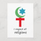 Cartão Postal respeito todas as religiões.