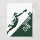 Este cartão postal, altamente personalizável, com tema de futebol, proporciona uma cena de ação onde um jogador de futebol voa para pegar a bola sobre a linha de toque. Este é um design excelente para jogadores de futebol americano pró ou amadores onde você pode personalizar o nome, o número de camisa e a mensagem.