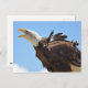 Retrato da águia-careca (Haliaeetus leucocephalus) bico aberto sobre fundo do céu azul