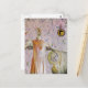 Uma pintura digital de um Smew com um vestido rosa de flapper com colares de renda. Há uma cadeira com um vestido branco e um chapéu descansando sobre ela. Um retrato de silhueta antigo de uma cabeça de pato em uma moldura de madeira redonda marrom escura, pendurado na parede. A parede tem papel de parede rosa com pássaros tropicais.