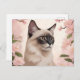 Cartão Postal Retrato de Gato Balinês com Flores em Flor