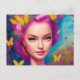 Cartão Postal Retrato de uma bela mulher com rosa brilhante