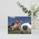 Cartão Postal retrato de uma jogadora de futebol amarrando-a