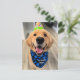 Cartão Postal Retriever de ouros com o Chapéu de aniversário e B