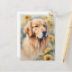 Cartão Postal Retriever e girassol do Ouro de pintura a aquarela