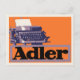 Da nossa poster com o mesmo nome. Nossa versão vetorial, em 5 cores, com ênfase em laranja e roxo, de um anúncio alemão de marca da máquina de escrever, originalmente feito pelo nascer judeu Lucian ou Lucien Bernhard (nome verdadeiro Emil Kahn). Ele foi influente em ajudar a criar o design chamado Plakatstil (estilo Poster), que usou imagens redutoras e de cor plana, assim como Sachplakat ("poster de objeto"), que restringiu a imagem ao simples objeto anunciado e ao nome da marca. (neue Sachlichkeit) A fábrica Adler (Adlerwerke) produziu bicicletas, máquinas de escrever e motociclos para além dos automóveis.