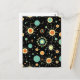 Step back into the groovy era with this vibrant retro atomic starburst pattern on a sleek black background. Bold circles, spiky bursts, and abstract orbits in creamy yellow, teal, coral orange, and mint green evoke the optimistic spirit of midcentury modern design.