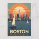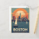 Cartão Postal Retro Boston Skyline & Sailcraft | Massachusetts