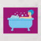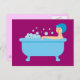 Esta ilustração adorável da menina da banheira retrô apresenta uma gatinha bonitinha com cabelo azul, joias cor-de-rosa e um sorriso tomando banho de bolha em uma banheira azul! Esta divertida vintage inspirou arte de desenho animado é o presente perfeito para comprar para qualquer um que ama kitsch e colorida arte original do vetor indie!