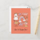 Este cartão postal do Dia das Bruxas captura a essência de uma noite assustadora e cheia de diversão. Um design retrô com um fantasma, abóbora, teia de aranha, e um chapéu de bruxa evoca o espírito da estação. As cores vibrantes e os elementos divertidos tornam este postal perfeito para enviar saudações assustadoras ou convites para a sua celebração de Dia das Bruxas.