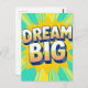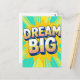 Bold inspirational quote retro bubble lettering bright yellow and blue colors.