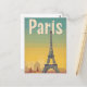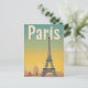 Este poster vintage elegante captura a beleza eterno da Torre Eiffel em um design de inspiração retrorreflectora. Tonalidades suaves e desbotadas e texturas nostálgicas evocam o romance do século médio em Paris, com a icônica ascensão torre graciosamente acima da cidade. Perfeito para amantes do encanto francês, posteres de viagens clássicos e arte europeia vintage.
