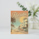 Uma ilustração nostálgica e inspirada no vintage de uma encantadora casa pastel aninhada entre palmeiras altas em Key West, Flórida. A casa apresenta um amplo alpendre com corrimões brancos e uma porta de entrada acolhedora. O céu é azul claro e ensolarado, com nuvens brancas fofas. A atmosfera geral é pacífica e relaxante, evocando um charme retrô.