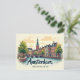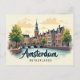 Este cartão postal vintage dá vida ao charme de Amsterdã com seus canais icônicos, casas inclinadas e bicicletas de eterno. Capturando a essência da capital dos Países Baixos num estilo retrô, é perfeito para coletores, viajantes e amantes da nostalgia europeia.