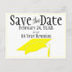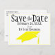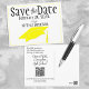 Enviar este anúncio de cartão postal amarelo e preto "Save The Date" com o Código QR para a reunião da sua classe. Personalize o texto nos campos modelo para frente e verso, adicione o link apropriado para o seu Código QR ou edite usando a ferramenta design para selecionar um estilo de fonte, tamanho e cor que você preferir.