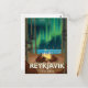Reykjavik Camping à noite sob o norte acende a Viagens vintage de Poster.