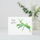 Este cartão-postal apresenta uma ilustração pintada de um louva-deus em verde-claro com sotaques laranja e está pronto para ser personalizado com sua própria mensagem na frente. A parte de trás deste cartão é vazio para você escrever em sua própria mensagem.