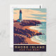 Rhode Island é um estado dos EUA na região de Nova Inglaterra e é conhecido por áreas arenosas e cidades coloniais litorâneas. Este poster de viagens mostra um velho farol na costa.