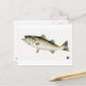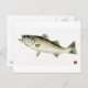 Um verdadeiro robalo listrado feito em estilo gyotaku (tinta aplicada ao peixe e depois esfregada com papel para criar a imagem.)