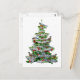 Um bando de robins numa árvore coberta de neve. Cartão adorável para solstício, Natal ou cartão de férias de inverno.