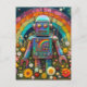 Cartão Postal Robô Arco-Íris num Prado Flor