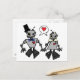 Estes dois robôs são tão esquisitos e adoráveis! Mostre sua personalidade e individualidade com estas duas criaturas, desenhadas à mão pela artista canadense Tara Tosh Kennedy. Coloque-os em um adesivo para notas obrigado. Bebês ou leitores/floristas podiam vestir uma camisa durante o ensaio. Pense em solteiros/festas divertidas! Tente jantar gravata! Convide! Papel de carta para o programa de casamento! Tremor para o chá! Etiqueta de bagagem para a lua de mel! Cara. Eu poderia continuar e continuar. Muito fofo!