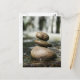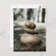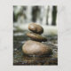 Um armário de um trio de rochas lisas empilhadas pela cascata de um pequeno lago.