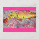 mostra truta colorida do arco-íris perseguindo uma mosca de uma pintura original com o slogan "rock on rainbows"!