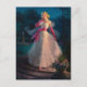 Cartão PinUp clássico mostrando uma linda garota pinUp rolando pelo jardim à lua, pintada pelo Art Frahm (1907-1981).