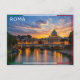 Pôr do sol quente sobre o rio Tibre com a icônica arquitetura romana brilhando à luz do entardecer.