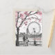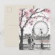 Este viagem, no estilo de ilustração de esboço, mostra um casal caminhando romanticamente nas ruas de Londres. É um postal excelente para celebrar aniversários para as relações que começaram em Londres, Reino Unido.