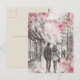 Este viagem, no estilo de ilustração de esboço, mostra um casal caminhando romanticamente nas ruas de Londres. É um postal excelente para celebrar aniversários para as relações que começaram em Londres, Reino Unido.