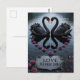 Cartão Postal Romantic Black Swans Heart Reflection with Text