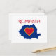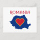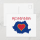 Compartilhe o seu amor pela Romênia com este mapa da Romênia. O cartão postal é desenhado com as cores da bandeira romena e apresenta um dentro de coração no mapa.