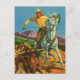 Ilustração colorida de um vaqueiro em um cavalo rolando um boi. Do cobrir de uma revista em quadrinhos vintage