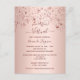 Um convite para Chás de fraldas virtuais femininos e femininos. Na frente: Um fundo metálico falsa rosa dourado. Decorado com ouro rosa, gotejamento de cobre e estrelas brilhantes. Modelos para a mãe ser o nome e detalhes da festa Zoom/Skype. O nome e o texto: Virtual são escritos com um script de estilo manuscrito, letras rosa douradas escuras. Fundo: fundo rosa dourado com estrelas. Dica: Se você não quiser que pareça um cartão postal, clique em personalizar, vá para o verso e remova o divisor e o carimbo de posto.
