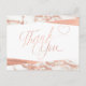 Cartão Postal Rosa Dourada White Marble Script Obrigado