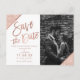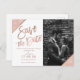 Cartão Postal Rosa dourado script de brilho branco foto salva a