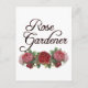 Rosa, jardineiro, para jardineiros, produtores e amantes. Em bonito letras de escrita com arte safena de flores cor-de-rosa e rosas vermelhas floridas ao longo do fundo.