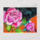 Cartão Postal Rosa rosa com arte de aquarela laranja