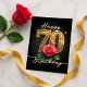 Marque sete décadas de vida com este cartão de aniversário de 70 anos verdadeiramente cativante. O grandioso "70" brilha em dourado luxuoso, estilizado de forma intrincada para capturar a luz, colocado contra um fundo profundo e rico que o faz saltar. Uma rosa rosa única e perfeita, com suas pétalas se abrindo graciosamente, está aninhada na base, trazendo um toque vibrante da elegância da natureza. Acima e abaixo, a escrita dourada de "Feliz Aniversário" flui como uma fita de seda, unindo todo o design requintado. A mágica? Todas as palavras neste cartão são completamente personalizáveis, prontas para o seu toque único.