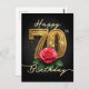 Marque sete décadas de vida com este cartão de aniversário de 70 anos verdadeiramente cativante. O grandioso "70" brilha em dourado luxuoso, estilizado de forma intrincada para capturar a luz, colocado contra um fundo profundo e rico que o faz se destacar. Uma rosa rosa perfeita, com suas pétalas se desdobrando graciosamente, está aninhada na base, trazendo um toque vibrante da elegância da natureza. Acima e abaixo, a escrita dourada "Feliz Aniversário" flui como uma fita de seda, unindo todo o design requintado. A mágica? Todas as palavras neste cartão são completamente personalizáveis, prontas para o seu toque único.