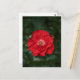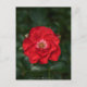 Uma fotografia de uma rosa vermelha num jardim. A flor está totalmente aberta expondo os caules amarelos do centro. Um par de botões vermelhos cresce atrás da flor principal. O fundo é cheio de folhas verdes. Imagem Copyright ©Kimberly J Tilley.