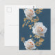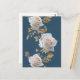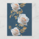 Cartão Postal Rosas brancas e folhas de ouro sobre fundo azul
