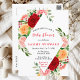 Este belo e elegante convite para chás de fraldas apresenta rosas cor d'água vermelha, rosa e laranja com folhagem. O texto combina o script manuscrito e as fontes serif para uma aparência na moda e moderna. Isto é perfeito para um chá de fraldas rústico de verão.