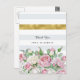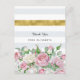 Um belo obrigado floral cor-de-rosa que você faz com um cartão-postal com rosas rosa romântica contra um pano de fundo de tendências de cinzas moles e um padrão listrado branco embelezado com uma faixa de ouro brilhante. Personalize esta design ultra-feminina adicionando seu nome e mensagem personalizada. O ouro é uma imagem impressa plana, NÃO metálica dourada.