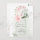 Frente, mas elegante, jarro de pedreiro enfeitado com rosas cor-de-rosa pálidas e pálidas e chá de panela de lavagem com aquarela verde macia. Parte dos detalhes estão incluídos na dentro do pote e o restante está na parte traseira do cartão-postal.
