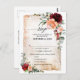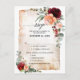 Cartaz do casamento Burgundy Peach Burnt Orange RSVP com opção de refeição que inclui buquê elegante de burgundy, vermelho, Marsala, marrom, Peach, rosa-salmão, coral e flores rosa de cor escamosa e folhas verdes de eucalipto. E a textura de pergaminho de aquarela. Entre em contato comigo para obter ajuda sobre a personalização ou se você precisar de outro produto com este design.