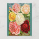 Um belo cartão postal vintage com uma imagem antiga de cartão comercial com belos rosas.